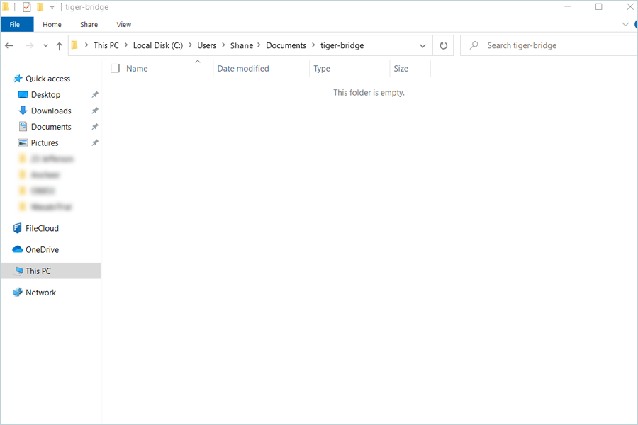 4. A new folder named tiger bridge (under the specified Source path) will be created on your system.
