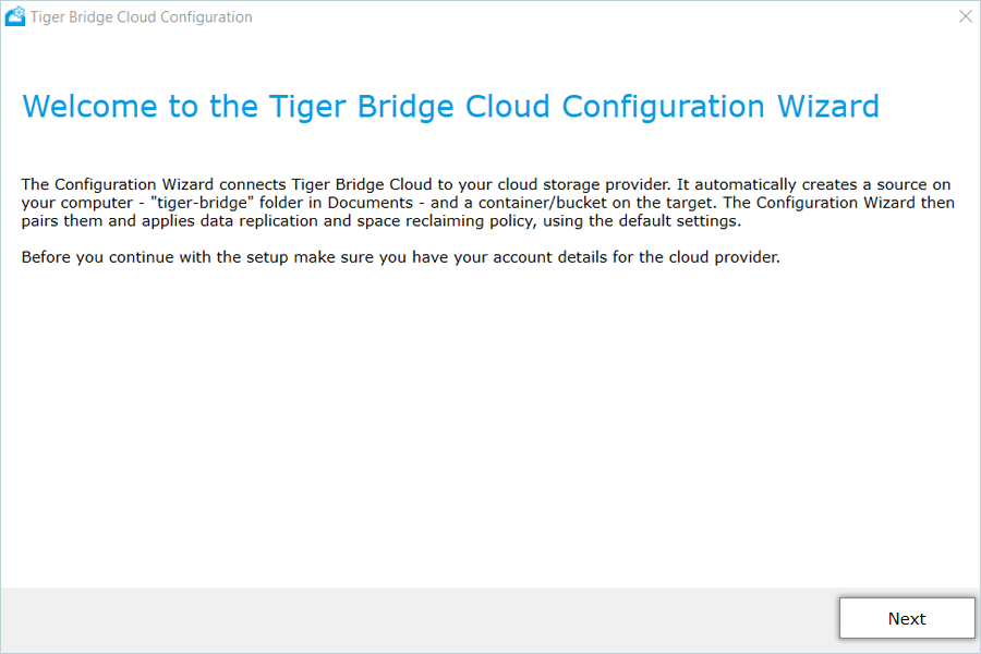 1. After installation, the Configuration Wizard launches automatically. Click Next.