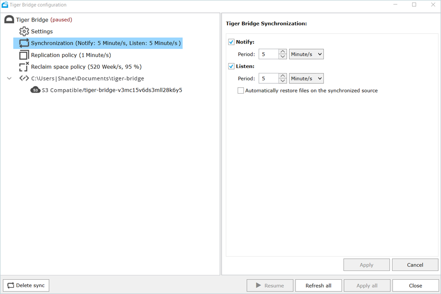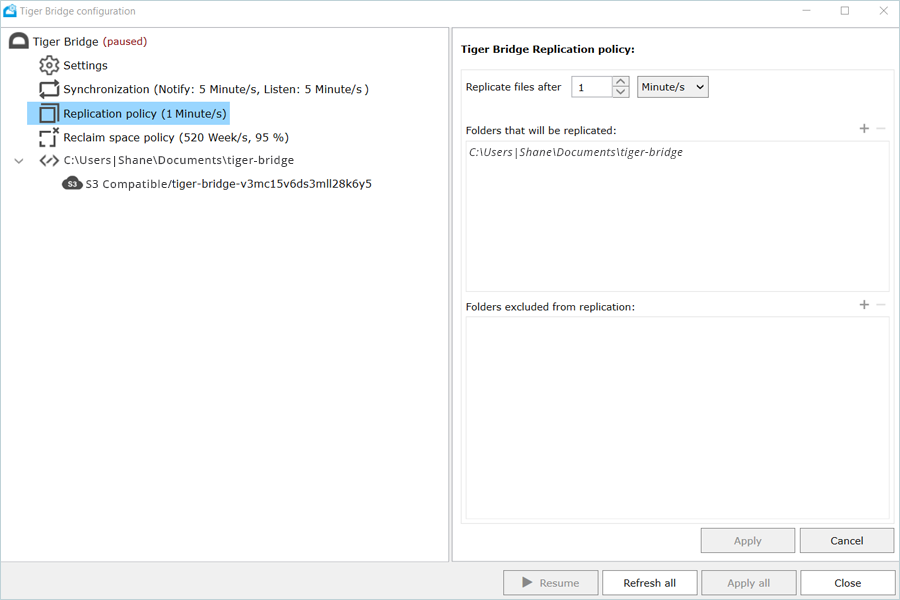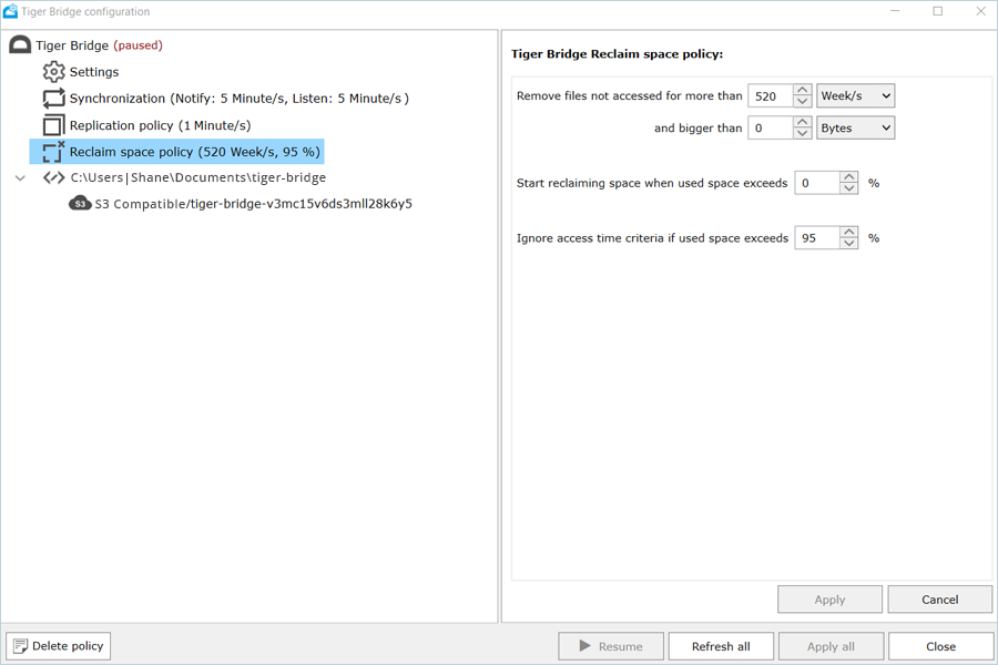 7. To modify the default Tiger Bridge configuration, open the Tiger Bridge application on your computer and access the Settings options.