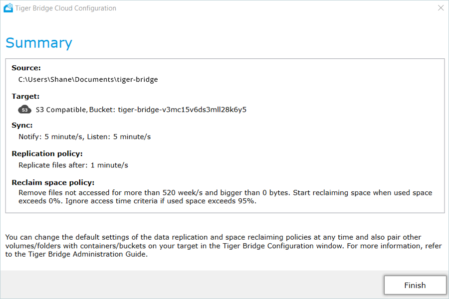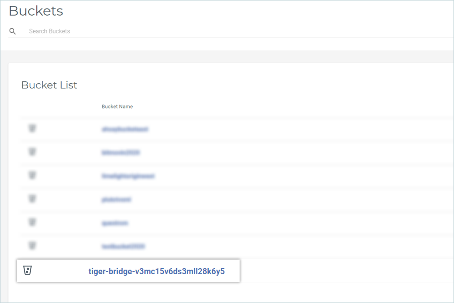 5. A corresponding bucket (for example, tiger-bridge-xxxxxxxxxx) will also be created in your IDrive® e2 account.